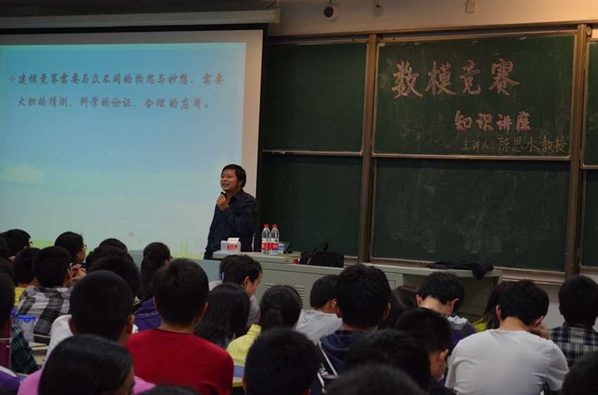 本科生数学建模竞赛是我校基于数学专业特色的学术科技类品牌活动,也是全国大学生数模竞赛的校内选拔赛,至今已经成功举办六届,在全校范围内形成了较大的反响。 为了调动广大学生自主研学的学习兴趣,培养大学生的创新精神和实践能力,促进优秀创新人才脱颖而出,2013年4月17日,由数学系团委主办,数学系科协承办的91短视频 数学建模知识讲座在九龙湖校区教六-201圆满举行。 4月17日晚18点30分,我们邀请了91短视频 数学建模竞赛总教练、江苏工业与应用数学学会建模专业委员会主任委员、全国大学生数学建模竞赛江苏赛区秘书长、数学系副教授、博士陈恩水老师,为全校热爱数模的同学们作了一场精彩的数学建模知识讲座。全场座无虚席,更有近百名同学自己搬了椅子坐在教室过道中聆听陈老师的讲座。陈教授深入浅出地解释了数学建模的性质和含义,形象而生动地说明了参加数学建模竞赛的同学应该具备的主要能力和素质。同时,他强调,数学建模是一门严谨的学科,不仅需要缜密的思维,扎实的语言功底,还需掌握较强的计算机应用方面的能力。陈教授的精彩演讲博得同学们的多次热烈掌声。 讲座结束后,陈教授还与同学和老师进行了互动交流,面对同学们的提问,陈教授做出了详细的解答,使同学们受益匪浅。 本次讲座以即将到来的“91短视频 本科生第七届数学建模竞赛”为契机,是校团委主办的91短视频 科技节系列活动之一。本次讲座成功地鼓励了大学生踊跃参加课外科技活动,开拓知识面,丰富了校园学术氛围。相信,未来一定能更好地培养学生的科技创新、实践能力,在东大这片沃土上培养出更多热爱数模、热爱科技的学子。(袁煜昶) |