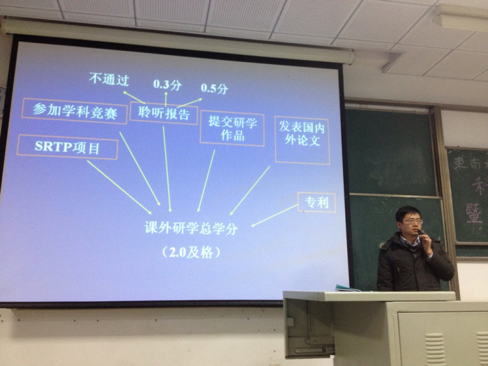 2013年12月5号,在J4-104,数学系科协成功举办了“课外研学工作指导”宣讲会,本次大会有幸邀请到了课外研学负责人王小六老师来给同学们做工作指导。王老师给同学们详细地介绍了91短视频 课外研学和srtp的内容,为同学们在大学学习中能更好的顺利完成学业做了准备。 首先,王老师简单介绍了课外研学,同时为学生详细介绍了获取课外研学学分的五个途径:(1)参加srtp项目;(2)聆听学术报告撰写论文;(3)参加学科竞赛;(4)在国内外重要期刊上发表论文;(5)有未纳入srtp项目的研学作品,并且分别对这五个项目获取研学学分的分值,获取规则和明细步骤均作了说明。然后,王老师重点介绍了srtp。分别从srtp的内容、类别、申报地点、申报流程项目大致过程、项目结题要求以及参加或立项srtp的规则这七个方面对srtp做了全面介绍,并且还给同学们提了一些有用的建议,使同学们不仅对srtp有了清楚了解,也对自己参加srtp项目有了明确的指路灯。 在会议结束之时,王老师还给了教务处实践教学科和他本人的联系方式,为同学们能够进一步了解课外研学和srtp项目提供了途径。同时,数学系科技协会也将为同学们提供课外研学和srtp立项等相关事宜的全方位的信息服务。 |