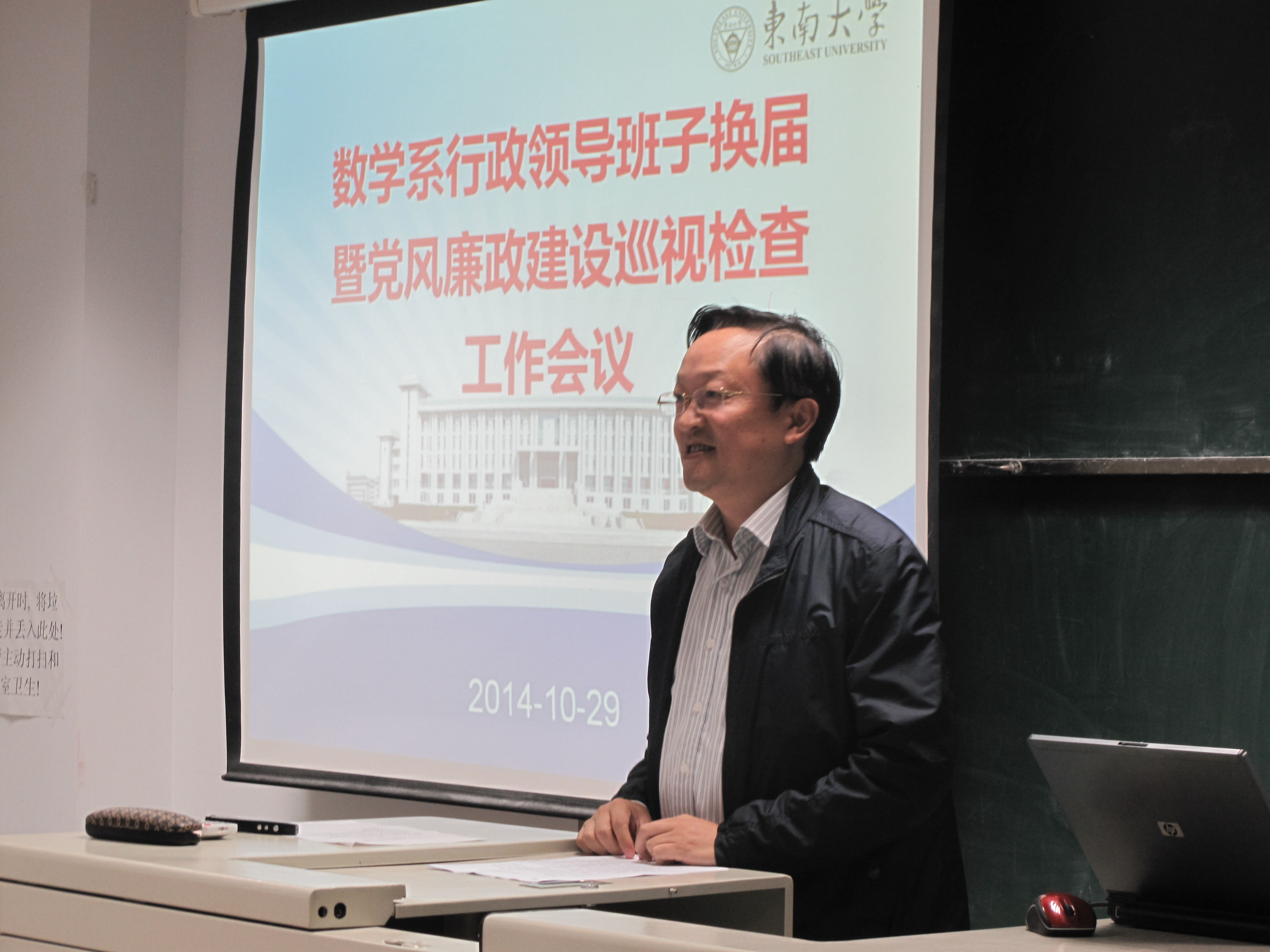 | 10月29日,我系在九龙湖校区召开系行政领导班子换届暨落实党风廉政建设责任制巡视检查工作会议。学校院系换届暨巡视检查工作组组长、校长易红,工作组成员、校党委组织部副部长邢纪红、校长办公室副处长级秘书赵会泽、校长办公室秘书崔琳出席。大会由系党委书记李涛主持,全系教职工参加会议。 易红校长首先对本次会议提出了指导性意见。他指出,数学系正处于快速发展的关键阶段,大家应充分认识到行政领导班子换届工作的重要性,这将会影响数学系未来五年甚至更长时间的发展。此次会议一方面是对前面五年的工作进行回顾总结,另一方面也是对新的领导班子提出新的要求。易红校长对新一届领导班子人选的任职基本条件和任职基本资格进行了详细解读,并强调了换届工作中的纪律要求和注意事项。他强调指出,推荐组成院系行政领导班子还应特别注意候选人的奉献精神、大局意识以及敢于担当、朝气蓬勃的精神状态。 系主任刘继军代表系党政班子作述廉述职报告,向校领导和全系教职工汇报了我系三重一大决策制度制定和执行的情况、落实党风廉政建设主体责任情况、贯彻落实中央“八项规定”情况以及“小金库”治理情况等。随后,刘主任代表本届行政班子进行了任期工作总结。他说,本届行政班子成员分工不分家,工作上相互配合支持,既分工负责,又全系一盘棋。在工作中,我系一直将全局观放在首位,力争为学校争先进位作贡献,同时牢牢把握学科交叉的关键点,选准突破口,抓大放小,尽可能达到个人发展的局部最优化,最终实现全系总体发展最优化。五年来,在全系教职工的共同努力下,我系在队伍建设、人才培养、教学改革、科学研究和学科建设以及管理工作等各方面都取得了不少成绩,同时也还存在一些不足。刘继军说,在未来的工作中,我系仍需进一步理顺学科发展和人才培养的关系,并不断地对工作量考核方案进行修订,使其更加科学合理,青年教师和后备干部的培养仍是重中之重,我系办公条件还需进一步改善。 在这次大会上,在邢纪红副部长的主持下,全系教职工对现任党政领导班子进行了落实党风廉政建设责任制情况综合测评并推荐新一届行政领导班子人选。会后,易红校长全程率领工作组成员分别听取了系党政领导、主任助理、各教研室主任、各党支部书记、全体教授、系工会主席、团委书记、办公室主任和其他教师代表等的意见。 |