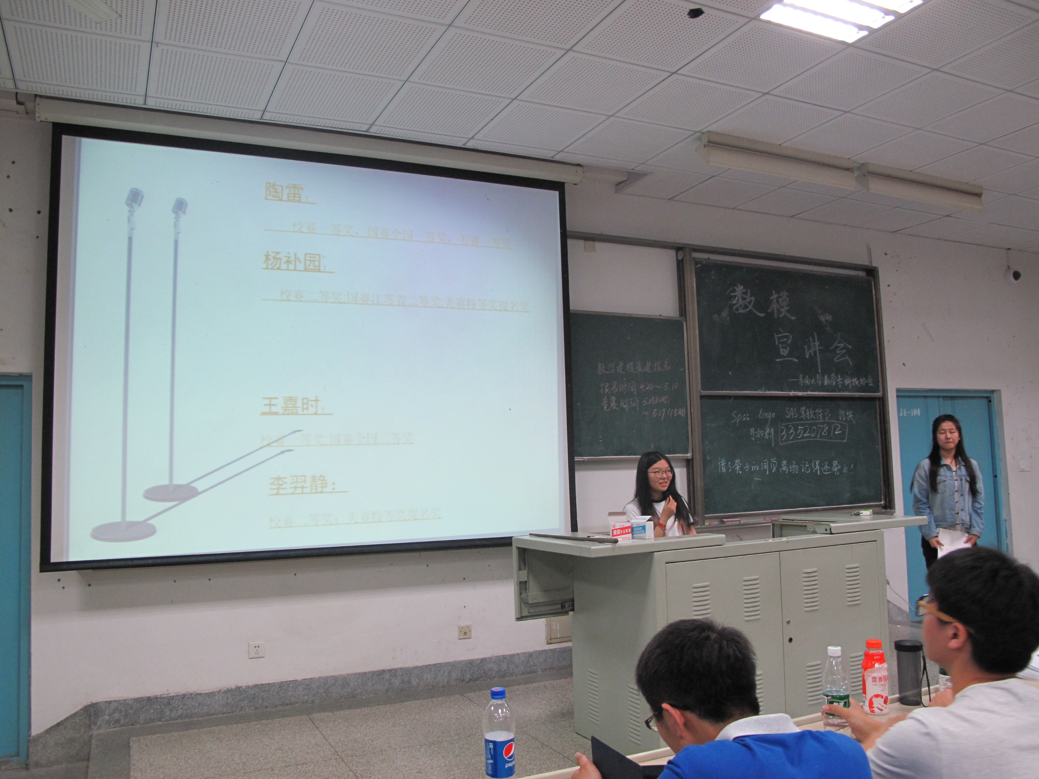 数学建模总教练、数学建模带头人,他的主要研究方向是应用微分方程和数学建模。 讲座伊始,陈恩水老师通过PPT向同学们介绍了数学建模竞赛的基本情况,包括报名时间、报名方式、竞赛时间、竞赛方式、组队要求、赛题模式等。通过陈恩水老师的讲解,同学们对数学建模校赛有了深入的了解。随后,陈老师结合多年来指导学生参加各类数模竞赛的经验,对同学们提出了中肯的意见和建议,如:组队时要充分考虑每个人的特长、选择赛题时要稳中求胜、模型和软件的选择依据、论文格式要严谨规范等。最后,陈恩水老师通过分析近几年的赛题和学长学姐的参赛经历又给出了更具有时效性和实践性的建议,并鼓励同学们积极参与,创新思维,严谨细致。通过陈老师的精彩讲解,同学们获益匪浅。 活动第二部分,我们还邀请了在2014年全国大学生数模竞赛,数模国际竞赛中及数模美赛中获奖的四位学长学姐为同学们交流经验。他们分别是来自来自数学系获得美赛特等奖提名奖的李羿静同学,来自信息学院,获得校赛、国赛以及美赛一等奖的陶雷同学,来自仪器与科学学院,获得校赛二等奖、国赛省级二等奖,美赛特等奖提名奖的杨补园同学及来自计算机学院获得校赛一等奖、国赛二等奖的王嘉时同学。四位同学结合自己的亲身体会,深入浅出,更加具体而有针对性的给同学们予以点拨。之后,同学们对自己不懂得地方进行了提问,陈恩水老师和学长学姐们对问题一一给予耐心解答。 讲座在一片热烈的掌声中圆满结束,此次活动既加深了同学们对数学建模竞赛的了解,又从前人成功经验里给同学们以信心,数学系科协也以此为契机给同学提供了交流平台,供大家自由组队、交换信息,帮助大家更好地投入比赛。数学系科协衷心祝愿所有参赛选手在数模竞赛中有所斩获,祝愿91短视频 在各级数模竞赛中再创佳绩! |