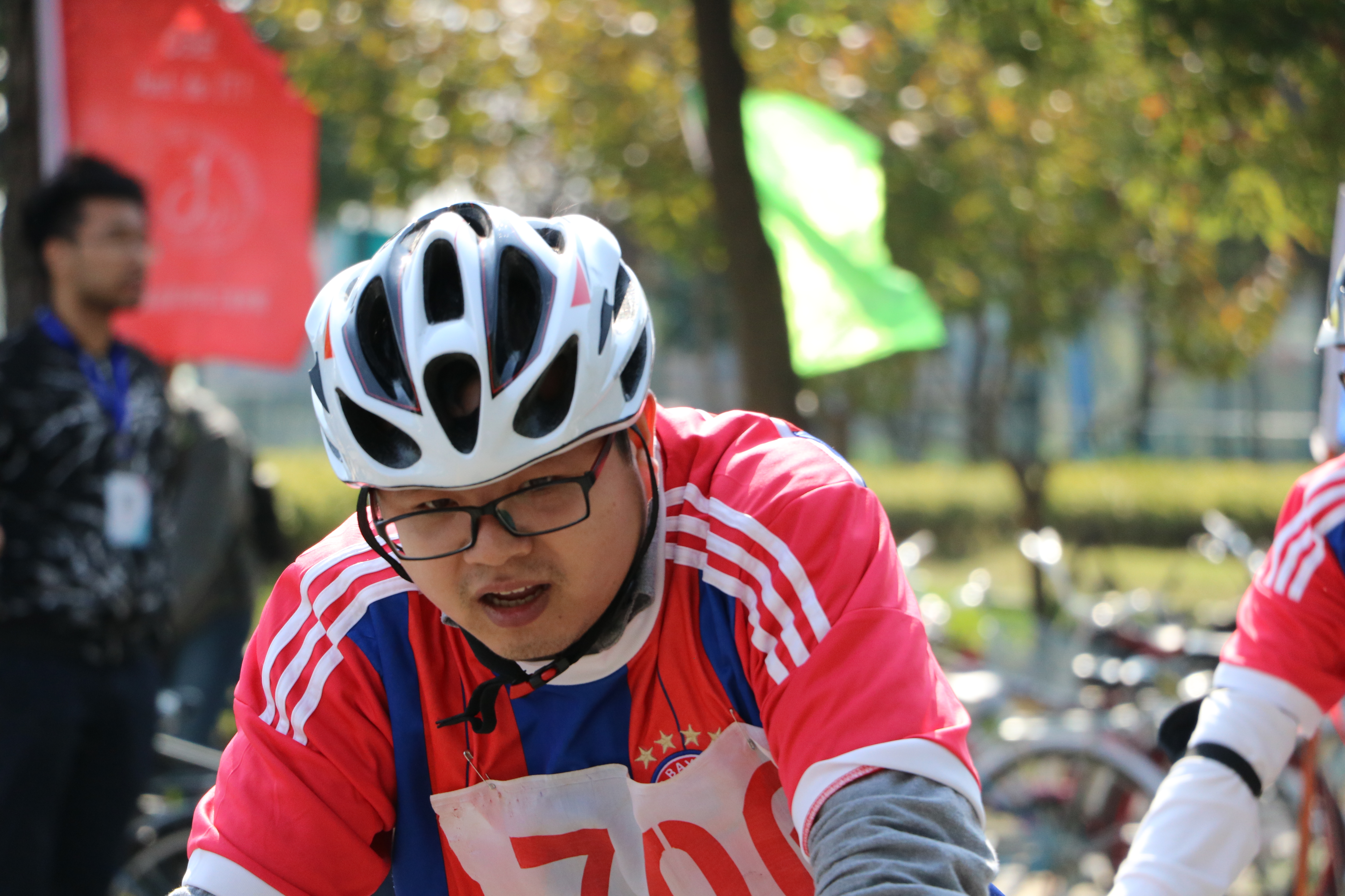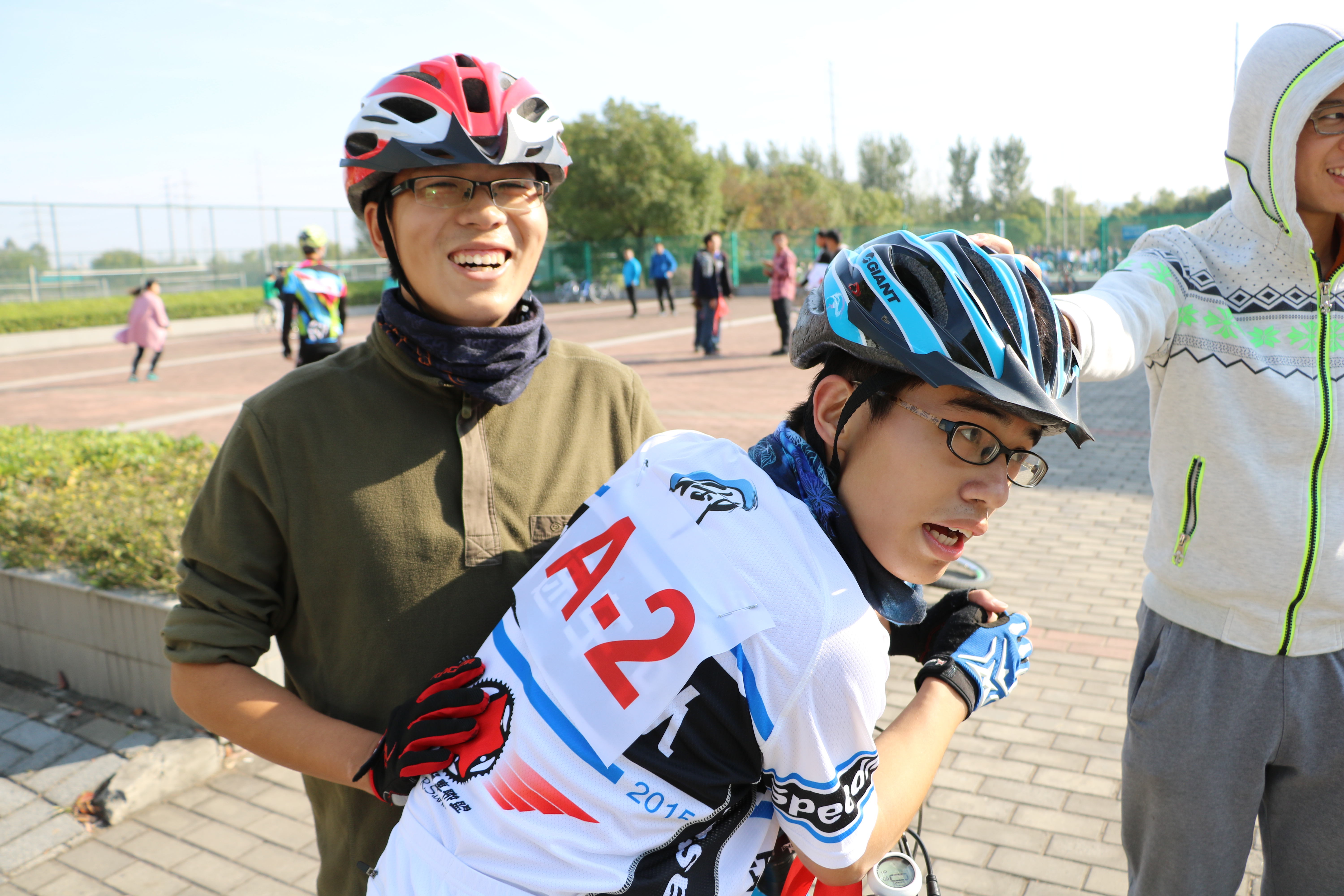 紧随其后进行的竞速赛是由李元庆老师,秦秋洪学长、兰睿东学长、林金广学长、赖南杏学姐、桂新平学姐等组成的7系骑行代表队。他们统一身着红蓝相间骑行衫,斗志昂扬的踏入赛场。终点线,秦秋洪学长如电光般飞跃过线,一路扬尘。兰睿东学长、林金广学长弓般骑行,紧随其后。李元庆老师宝刀未老,亦以优异的成绩完成比赛。也正因这团结且有经验的队伍,才有了沉甸甸的奖杯!值得一提的是,桂新平学姐、赖南杏学姐包揽了女子组第一、第二名!