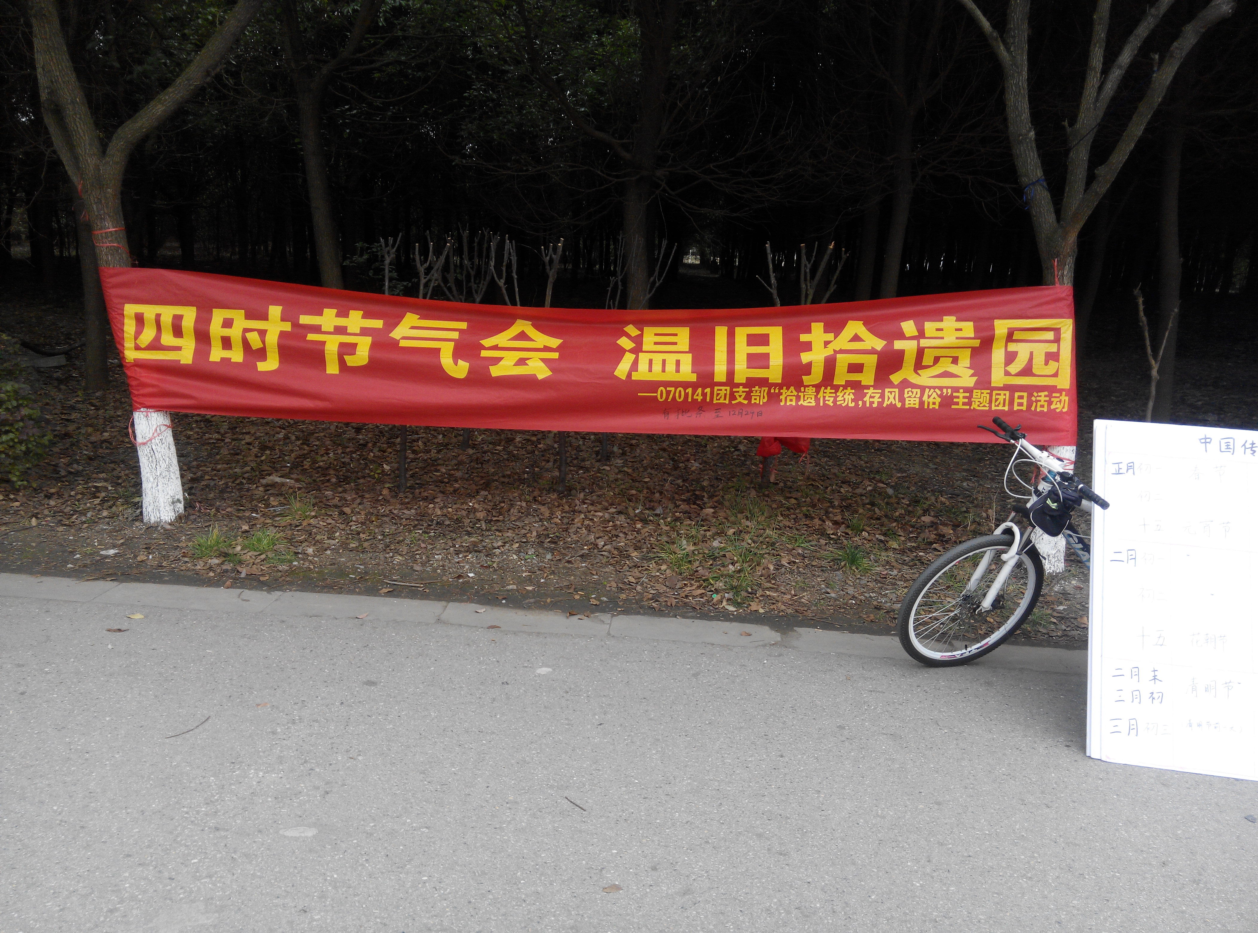 历史是中华民族的骄傲。泱泱五千年的历史,留下了无数的珍贵文化。然而,在生活节奏越来越快的现代,很多人逐渐忘记了那些传统风俗。传统文化在我们心中的痕迹越来越淡,属于中华民族自己的节日也渐渐被外国侵蚀。为唤醒同学们心中对保护传统风俗的责任感和使命感,070141团支部组织筹办了“拾遗传统,存风留俗”系列活动,以节气和节日风俗为切入点,让同学亲身体验,体悟传统二十四节气中蕴含的卓越智慧,体会中国劳动人民的伟大创造力。