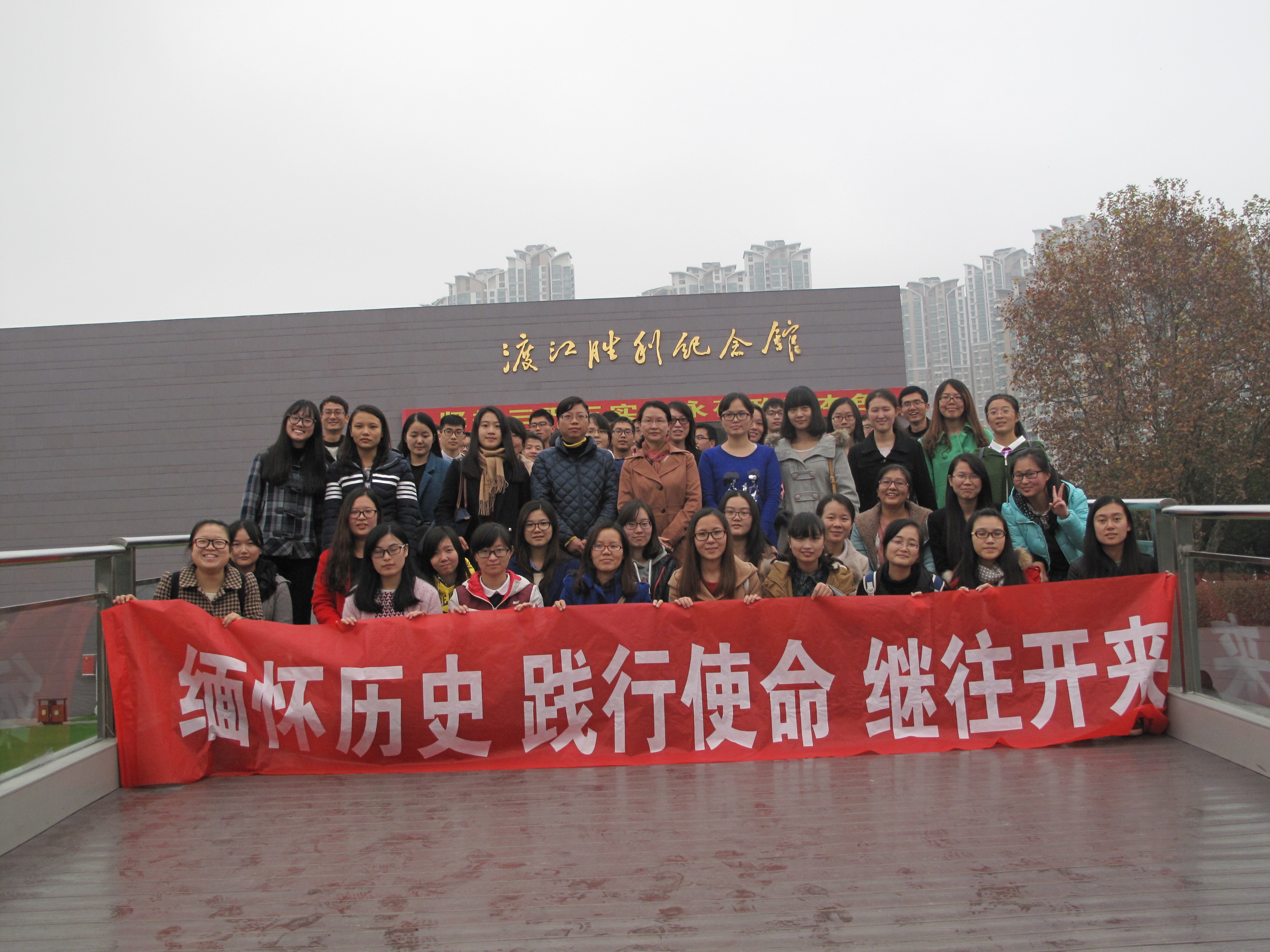 11月22日下午1点,所有党员从学校乘车出发,抵达活动的第一站南京渡江胜利纪念馆。全体党员分成两组,先后参观了渡江胜利纪念馆。在讲解员细致的讲解下,大家感受了渡江战役中人民解放军冲破敌阵的宏伟场景,回忆起“钟山风雨起苍黄,百万雄师过大江”的壮丽场面,体会着革命先烈对革命事业必胜的壮志豪情。缅怀历史,鞭策自己不断进取。