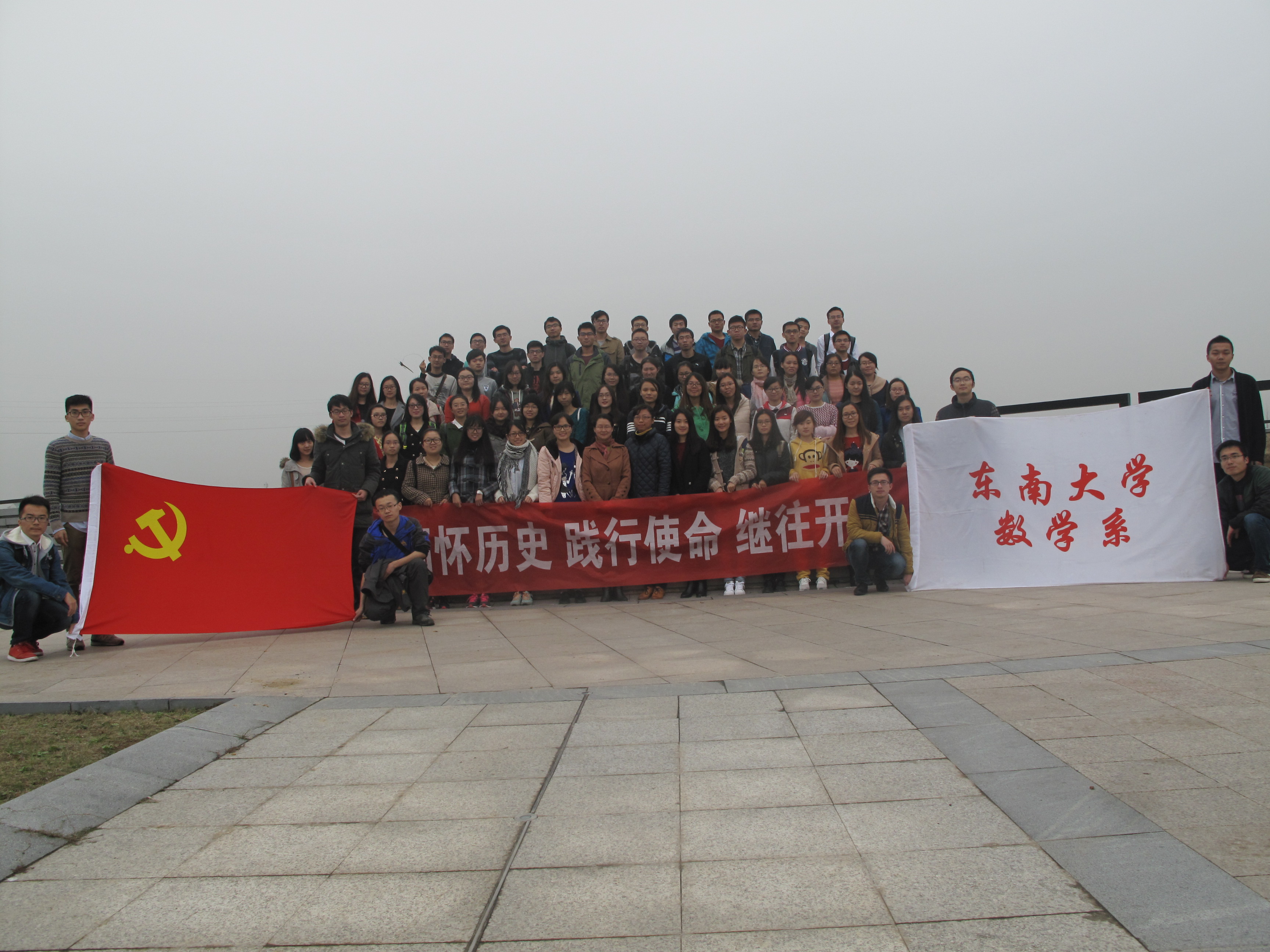 本次活动由数学系党委主办,2015级硕士生党支部承办。活动主要分为三个部分,“缅怀历史”—踏访红色印迹,“践行使命”—重温入党誓词,“继往开来”—开启寻宝之旅。其中,第一、第二两部分活动在南京渡江胜利纪念馆成功开展,第三部分活动在南京绿博园激烈展开。数学系本科生2个支部、硕士生3个支部和博士生1个支部将近80名党员一同参加党日活动。