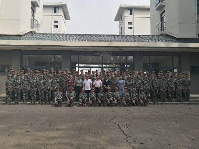 讲话结束后,我院领导与军训新生合影留念。我院领导的学士风貌和军训新生的挺拔身姿尽显“文枢江左”“武备东南”!