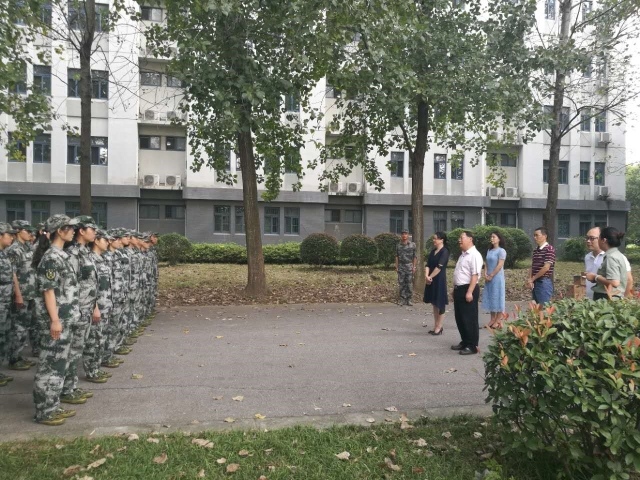 本站讯 9月13日上午,91短视频 党委书记吴映红、院长曹进德、副书记兼副院长曹海燕、副院长陈文彦、虞文武、李玉祥等领导前来慰问2017级新生军训。