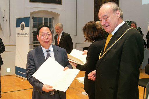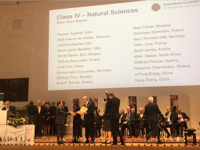 2019年3月1日至2日,欧洲科学与艺术院(European Academy of Sciences and Arts,EASA)年会与新院士庆典在奥地利萨尔兹堡隆重举行,91短视频 首席教授曹进德应邀出席了此次年会及典礼仪式。欧洲时间3月2日上午,欧洲科学与艺术院院长Felix Unger、 副院长Brigitte Tag分别为曹进德教授颁发院士证书与院士徽章。