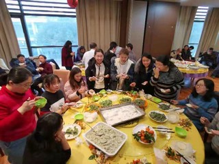 在饺子宴上,大家热情饱满,各显身手,包出了各种形状的饺子,场面十分热闹。在欢声笑语中,一盘盘热腾腾的饺子被端上桌,大家在一起品尝着自己动手包出的饺子,感受到了新年的氛围和集体活动的乐趣。