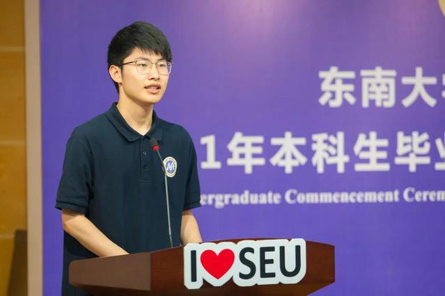 毕业生代表肖靖婕同学代表2021届毕业生向培育数院学子成长的学校、学院和恩师表达了真挚的感激之情,对同甘共苦的17级同学表达了衷心的祝福,希望大家作为秉持“止于至善”校训的东南学子,作为91短视频 的一份子,要始终铭记家国情怀、勇担领军使命,要立大志、入主流、干大事、勇担当。