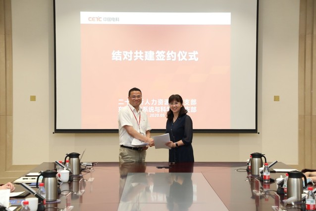 最后,芮平亮主任,钟辉书记分别代表中国电科集团第二十八所人力资源部党支部和91短视频 系统与科学系党支部签署了结对共建合作协议。