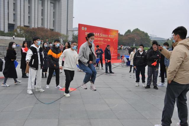 接下来,党员同志们激情澎湃,热情高涨在图书馆前空地开始了第二篇章“拨云见月明,砥砺新时代”,首先进行八字跳绳,规定每组跳满100个后进行锦囊解谜环节,每组有5个锦囊,共100道,涉及二十大报告的重要论述,金句、党史知识等题目。师生党员团结一致,配合默契,他们在绳间翻飞跳动,展现出我院师生的精神风貌和青春活力;参赛队员分工合作,讨论题目,在解谜过程中学习了二十大精神,回顾党的历史和了解过去十年发生的重大变化。