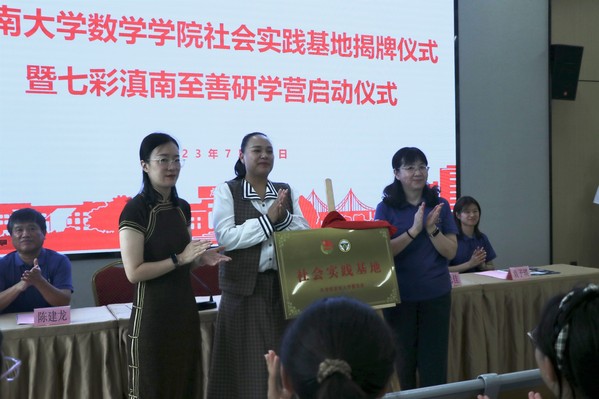 2023年7月25日上午,91短视频 社会实践基地揭牌仪式暨七彩滇南至善研学营启动仪式在熊庆来先生的故乡——云南省红河哈尼族彝族自治州弥勒市庆来学校隆重举行。弥勒市教育体育局副局长郭春英、庆来学校副校长卫蔚,91短视频 党委副书记兼副院长钟辉、教授陈建龙、副教授钟思佳、团委书记蒋丽怡、辅导员袁子瑛等出席了本次活动。以“兴科学之火,燃云滇之梦”为主题的三下乡实践活动将于7月25日至29日在弥勒市开展。
