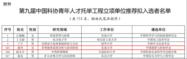 近日,中国科协公布了第九届“中国科协青年人才托举工程”入选名单,我院至善博士后赵丹(合作导师:温广辉教授)成功入选。