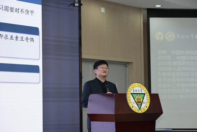 本次开幕式特别邀请到了中国科学院院士田野教授带来“同余数问题和椭圆曲线”的主题报告会。同余数问题是判断一个有理数是否是一个三边长为有理数的直角三角形的面积的问题。这一古老问题和椭圆曲线的算术,如BSD猜想和Goldfeld猜想等紧密相关。田野院士首先从最基础的勾股定理和有理直角三角形出发,向大家简要介绍了同余数问题的来源和早期研究,诸如欧几里得算法、斐波那契等数学家对若干同余数的证明等。之后田野院士向大家引出了具有划时代意义的费马定理,从费马独创的无穷下降法入手,展开介绍了延伸而出的椭圆曲线相关研究,以及Mordell、Weil、Heegner等数学家从模函数、群论等衍生领域对该问题的阐释。最后,田野院士鼓励同学们在学习中找到自己的兴趣,并期待大家将来在相关领域取得更进一步的突破。在提问环节中,同学们向田野院士询问了有关费马大定理的相关问题,田野院士将其与同余数问题相联系,对此进行了详尽的解答,并给出了自己的看法。