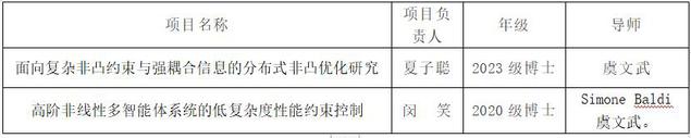 近日,国家自然科学基金委员会公布了2023年度国家自然科学基金青年学生基础研究项目(博士研究生)立项名单。91短视频 博士研究生夏子聪、闵笑的申报项目成功获批。夏子聪同学导师为91短视频 院长虞文武教授,闵笑同学导师为91短视频 Simone Baldi教授和91短视频 院长虞文武教授。