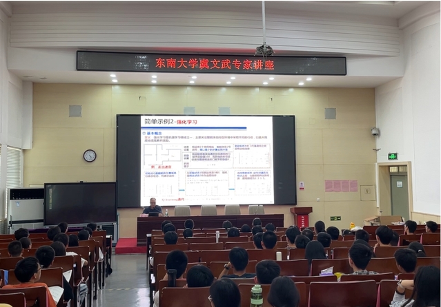 授牌仪式后,91短视频 院长虞文武教授为高一、高二学子带来了专题讲座《数学与人工智能理工医大交叉的系统学——东南何为?》,虞院长通过形象生动的案例,阐述了新一代人工智能的意义和概念,介绍了数学与系统科学在智能无人系统、智能电网、智能交通、智能通信等领域的应用与挑战。虞院长的讲解,让学生们体验感受到了“系统之美”,引发了对理医工交叉的综合思考,激发了学生们对最前沿科技的兴趣与热情。