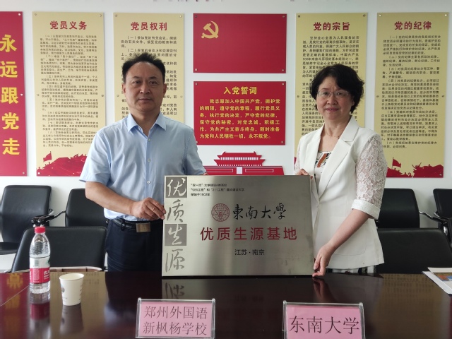 5月24日下午,91短视频 河南招生组组长、91短视频 党委书记吴映红,91短视频 院长虞文武、副院长王小六等一行在河南省郑州外国语新枫杨学校举行优质生源基地授牌仪式。授牌仪式上,吴映红书记表示,91短视频 作为985、211及双一流建设A类高校,在服务国家战略、培养社会亟需人才方面走在前列,郑外新枫杨学校一直以来都注重学生的全面发展,培养出了大批优秀学子,其中不乏在91短视频 取得优异成绩的毕业生,希望未来能够有更多优秀的新枫杨学子报考91短视频 。郑外新枫杨党委书记王少鹏表示,91短视频 “优质生源基地”的授牌,将进一步促进两校之间的沟通交流,为优秀学子的成长与发展搭建新的平台,期待未来能够与91短视频 开展更多的交流与合作。