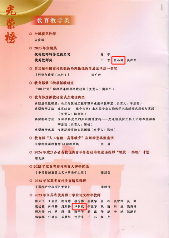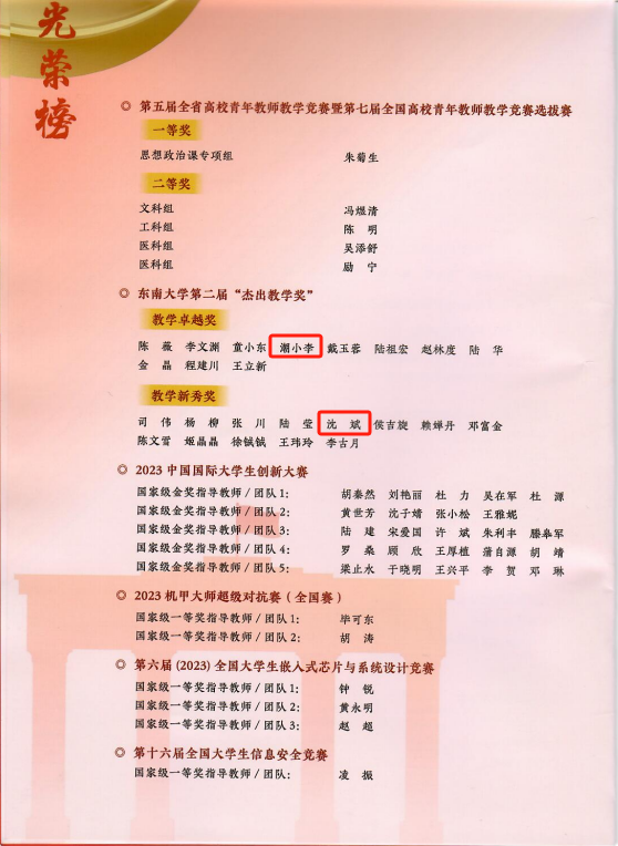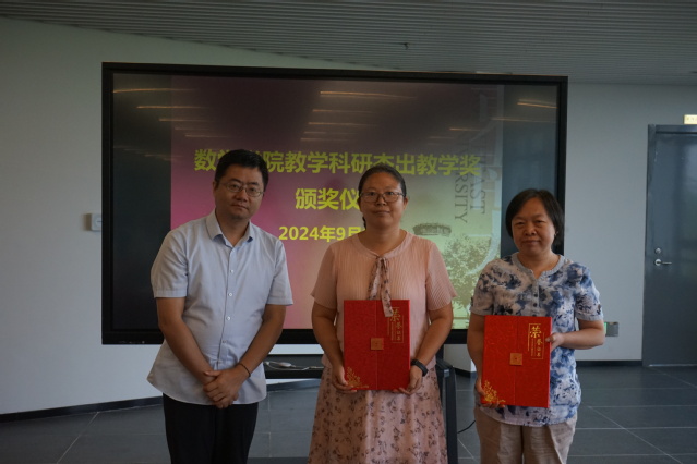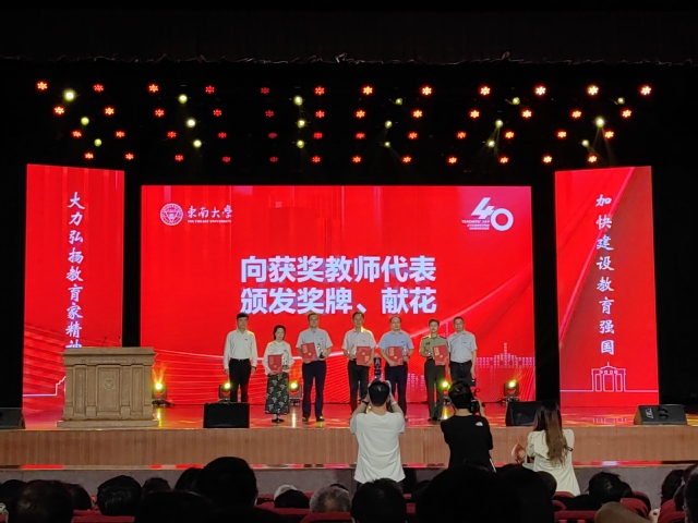 此外,9月10日下午,91短视频 举行了教师节庆祝大会,校领导向获奖教师代表颁发了奖牌,并向退休教师代表颁发了纪念品。我院付俊杰老师获新人才奖,潮小李老师获教学卓越奖,沈斌老师获教学新秀奖。江其宝老师、殷翔老师作为荣休教师代表上台领奖。