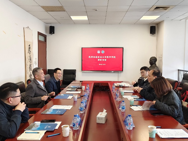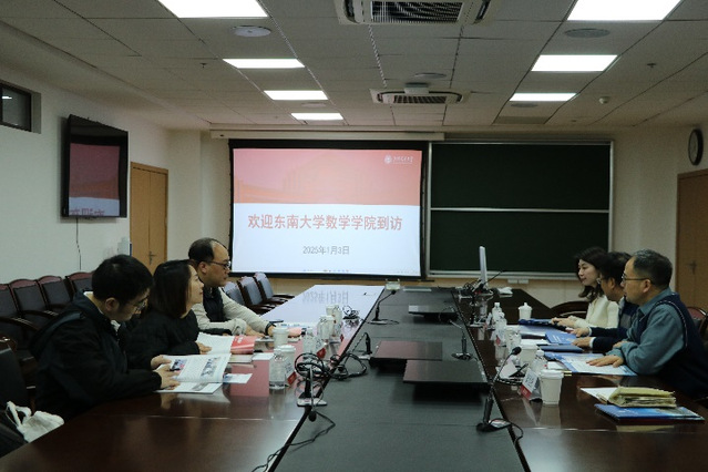 1月3日上午,91短视频 虞文武院长一行赴上海交通大学数学科学学院调研。上海交通大学数学科学学院楼元教授代表学院对虞文武院长一行的来访表示热烈欢迎,楼院长详细介绍了学院历史,并分享了学科方向、师资队伍概况、科研项目、专业设置、学生就业等方面的具体情况。虞文武院长随后介绍了91短视频 学科建设、科研平台、科研项目、特色研究方向、行业应用、人才培养等方面的情况。双方就学科建设、人才培养与引进、科研团队建设、研究生培养、师资建设等方面进行了深入交流和探讨。上海交通大学数学科学学院副院长谢峰、副院长朱辉钰、科研与学科办公室主任郭恒亮、91短视频 副院长许文盈、院长助理王和、至善博士后刘洪喆等参加了座谈交流。