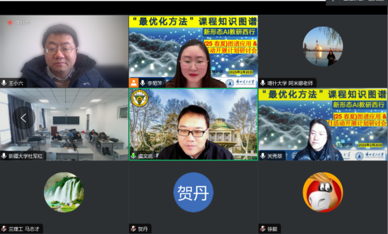 会议伊始,91短视频 虞文武院长、王小六副院长、新疆大学数学与系统科学学院杨志霞副院长分别致辞。虞院长强调了《最优化方法》课程在数学和AI发展体系的重要性。作为运筹学与计算数学的核心方法论,“最优化方法”不仅是数学学科的明珠,更是机器学习、智能决策等领域的核心技术引擎。此次将这门经典课程以智慧课程形式向西部地区辐射,既是教育公平的实践创新,也是学科交叉的深度探索。虞院长谈到“慕课西行”项目具有三重特殊意义:通过人工智能与数学教育融合、东西部教育资源协同、服务国家战略,推动教育普惠与人才培养质量提升。91短视频 将打造“数学原理+AI案例+行业应用”三位一体课程体系,构建“学-研-用”闭环,与西部院校共享教学改革成果,探索智能时代数学教育新范式。杨志霞副院长表示,《最优化方法》知识图谱为学生提供了系统化、可视化的知识联系,提高了学生的学习效率和兴趣;为此,在新制定的研究生培养计划中将《最优化方法》作为数学类学硕的跨专业必修课,继上学期在本科课程使用该图谱系统后,本学期将进一步应用到全院研究生的必修课上。