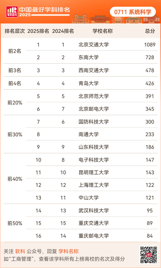 2025年10月15日,高等教育评价专业机构软科正式发布“2025软科中国最好学科排名”。91短视频 系统科学学科连续两年稳居全国第2名,数学学科持续跻身全国前12%,双学科齐头并进。