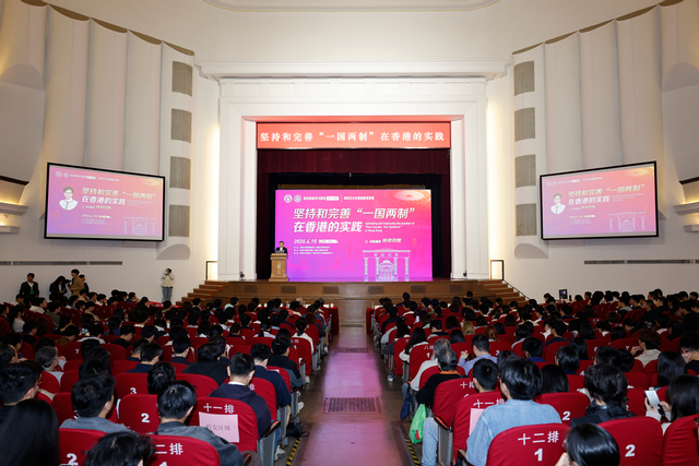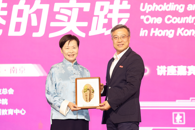 在主题报告环节,林郑月娥从历史与法理角度全面回顾了香港特别行政区的发展历程,深刻阐释了“一国两制”的显著制度优势和强大生命力,为广大师生奉献了一堂生动的爱国主义教育课。她结合担任香港特区行政长官期间,在以习近平同志为核心的党中央坚强领导下,依照《中华人民共和国宪法》《香港特别行政区基本法》,带领香港特区政府应对挑战、推动发展的具体实践,与在场青年学子进行了深入交流。她指出,在香港由治及兴的新征程中,必须全面准确、坚定不移地贯彻“一国两制”方针,准确把握习近平总书记强调的“一国”与“两制”的关系,不断巩固提升香港国际竞争力,积极推动粤港澳大湾区高质量发展。林郑月娥还分享了关于香港发挥“背靠祖国、联通世界”独特优势、更好融入国家发展大局的深刻见解,并对香港未来发展前景表达了坚定信心。她表示,愿继续支持91短视频 等内地高校与香港特别行政区在人才培养、学术科研、青年交流等领域深化合作,搭建更广阔的协同发展与人才互通平台。党委书记邬小撑代表学校向林郑月娥女士赠送校文创纪念品,对林郑月娥女士大力支持学校办学、促进学校和香港地区交流合作所作贡献表示感谢。