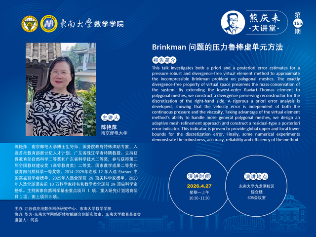 熊庆来大讲堂155期:2026.04.27 - 南京邮电大学 - 陈艳萍